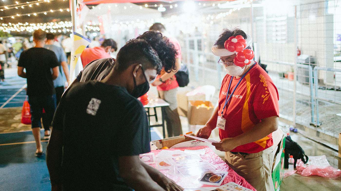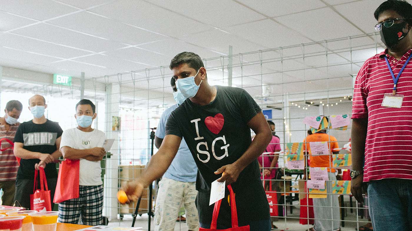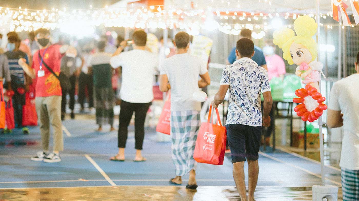 In a bid to revive the festive atmosphere that migrant workers were used to before the pandemic hit, Singapore Land (SingLand) supported a night market for the residents of Choa Chu Kang Dormitory B organised by non-profit organisations Sama Sama and Covid-19 Migrant Support Coalition (CMSC).